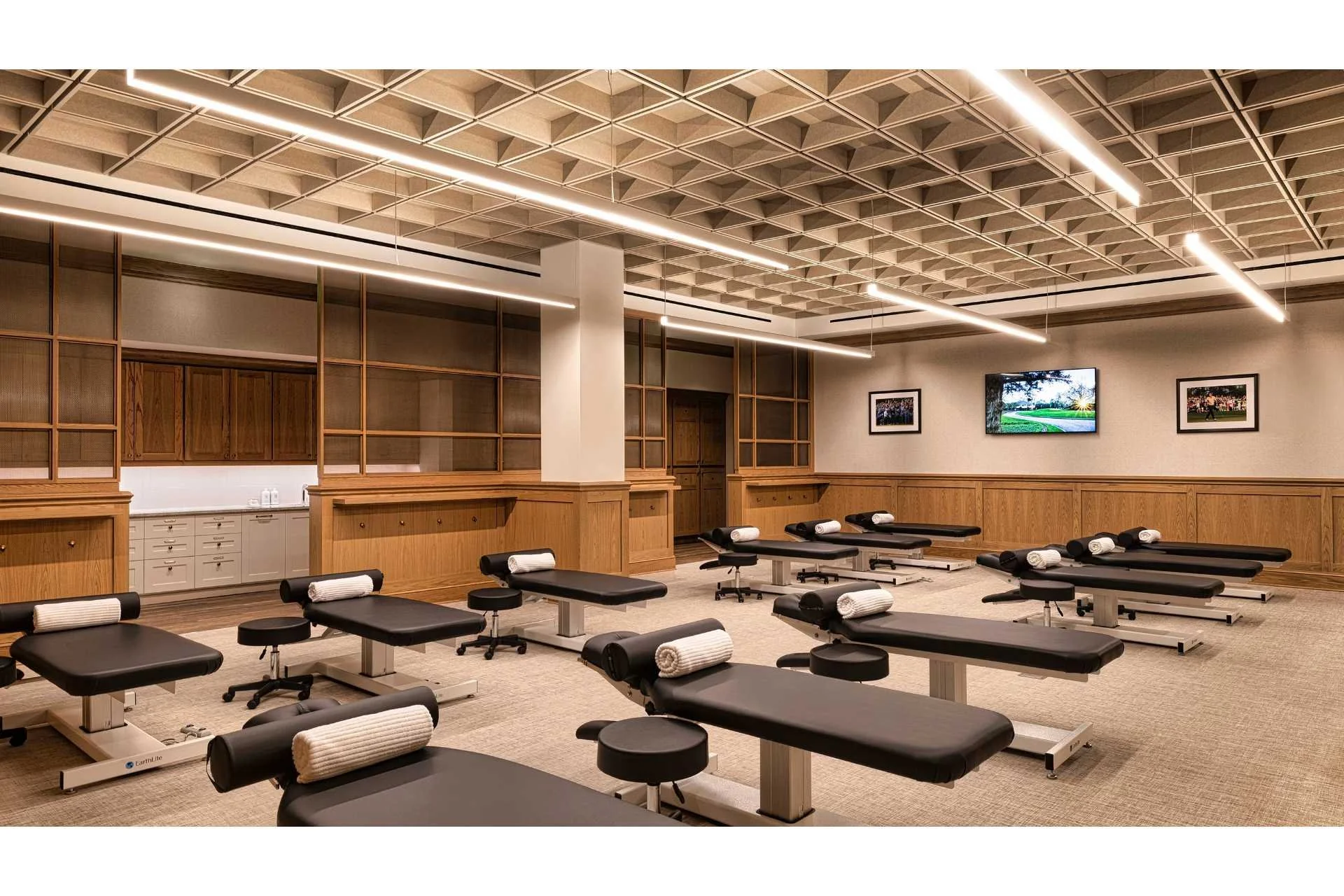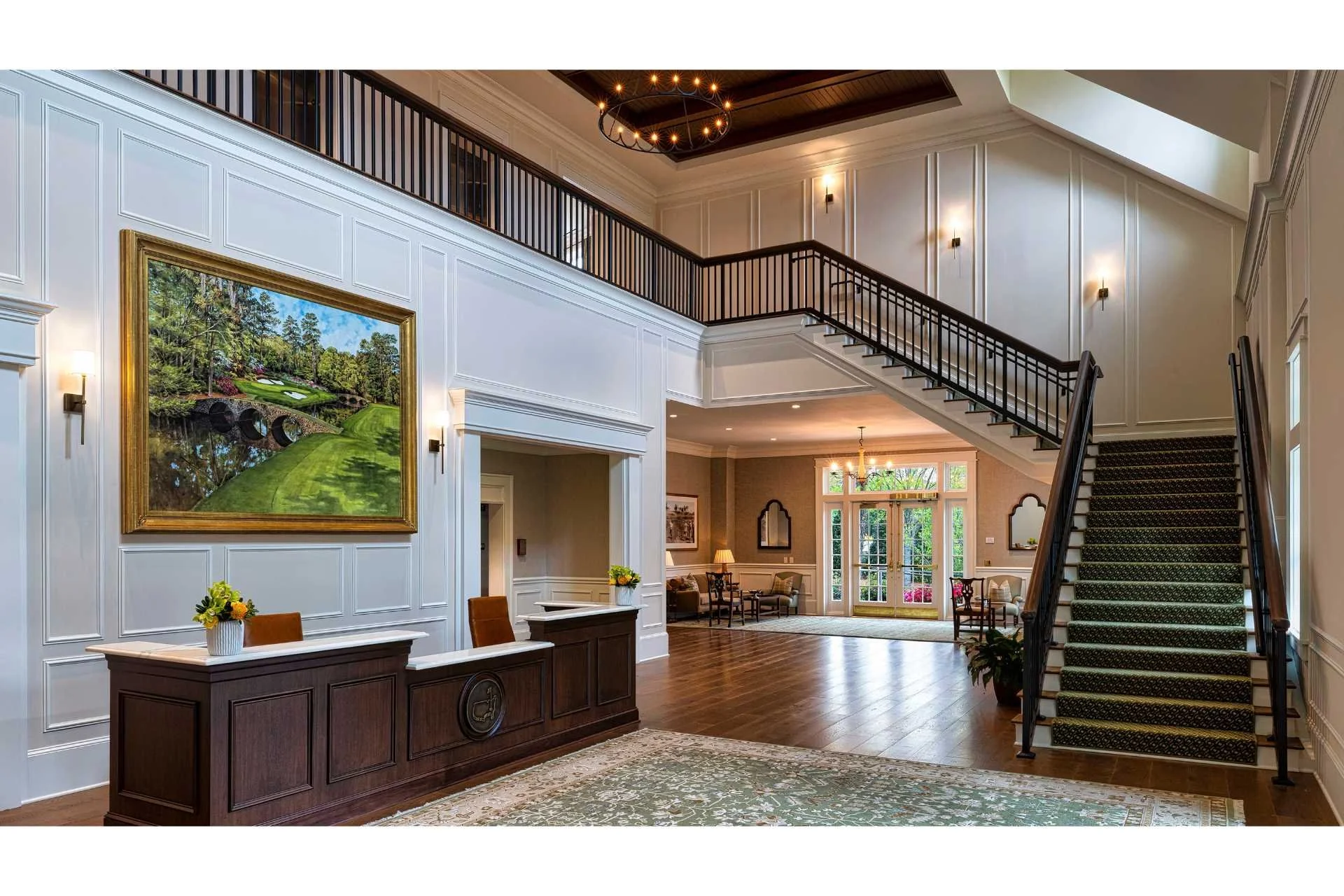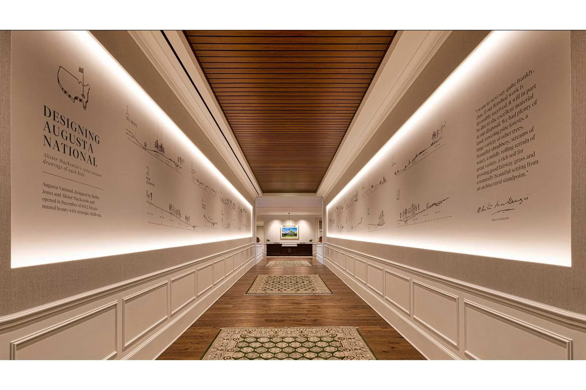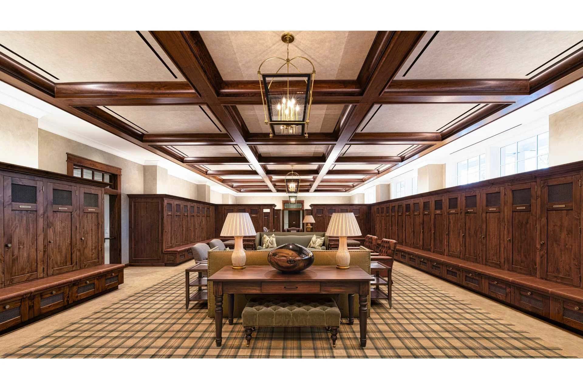 The complex includes a stylish locker room with 100 private lockers and charging facilities. The lounge area features a tip of the hat to Augusta founder Bobby Jones alongside other historical detail.